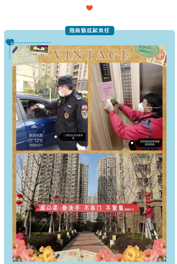 自安徽省政府启动重大突发公共卫生事件一级响应以来,琥珀物业人全员上岗、24小时坚守岗位。“救治一线在医院,防控一线在物业”,他们不是医生,没有救死扶伤的本领,他们不是专家,不能为疫情防控献言献策,但是他们不忘初心、牢记使命,舍小家团聚,守万户平安。在这个特殊的时期,致敬所有奋斗在岗位的物业人,他们朴实而坚定,平凡而伟大,谢谢你们,用守护让业主安心、祖国放心。
