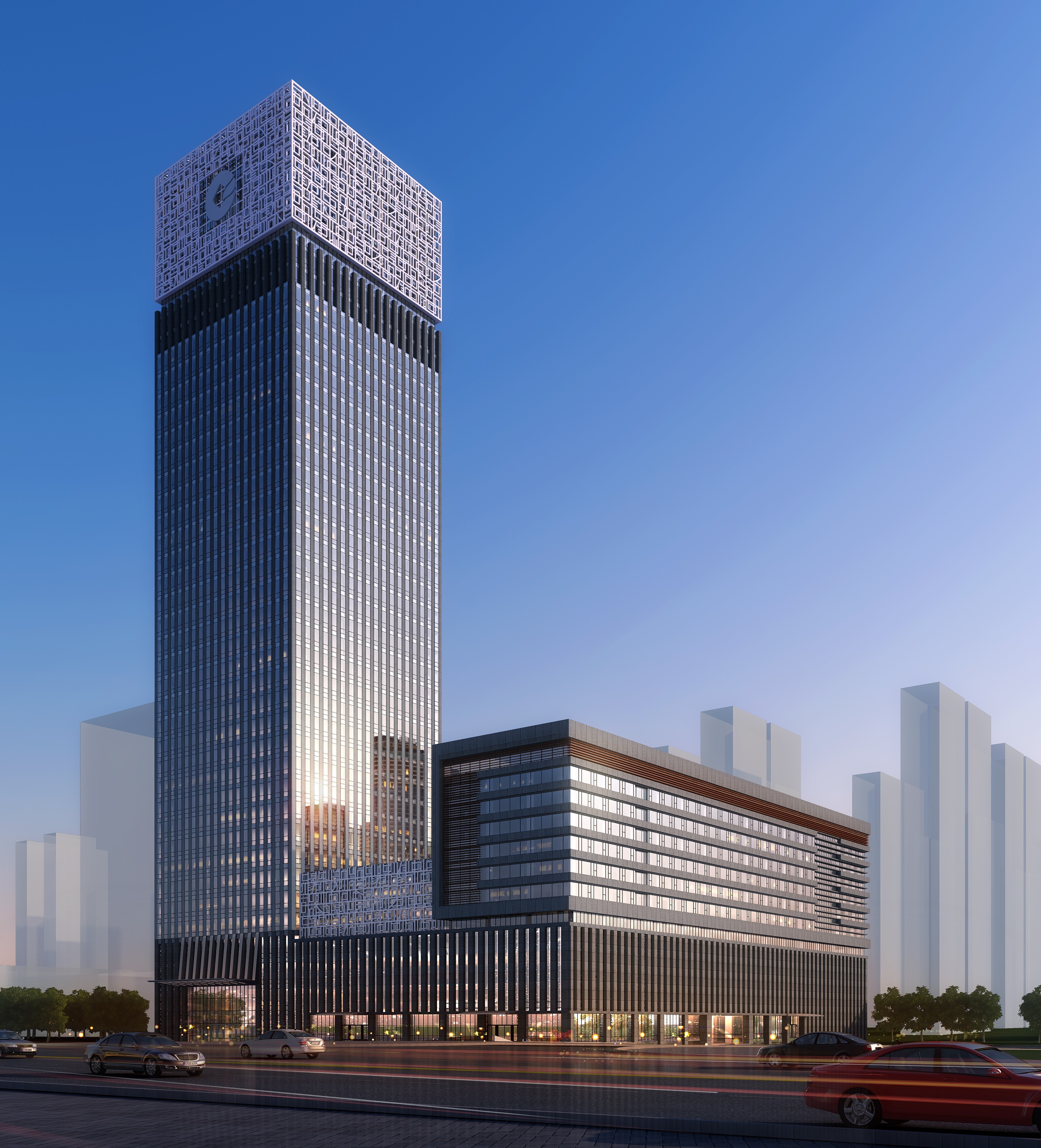 项目位于合肥市滨湖新区,总建筑面积为15.48万㎡,办公主楼建筑高度180米(38层),结构形式为框筒,目前是公司代建项目高度之最。项目涉及建筑、结构、智能化、泛光照明、供配电等各专业以及屋顶停机坪、中央空调、低压柴发、太阳能等各类大型设备,功能齐全,技术复杂。