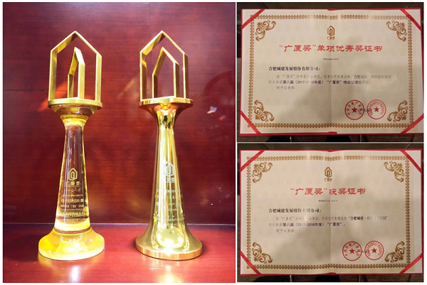“广厦奖”是经住房和城乡建设部批准,由中国房地产业协会、住房和城乡建设部住宅产业化促进中心共同设立的我国房地产开发项目的综合性大奖。是由住宅与城乡建设部颁发,经国务院批准设立的国家级房地产奖、行业内最权威的房地产奖项评选,相当于鲁班奖、梁思成奖、詹天佑奖,代表房地产综合开发行业的最高荣誉。